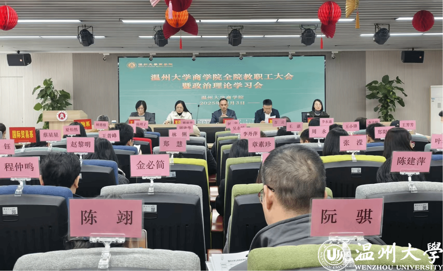 在商院楼A226仲辉商道讲堂举行全院教职工大会暨政治理论学习会,会议由学院党委书记唐华主持,学院全体教职工参加。