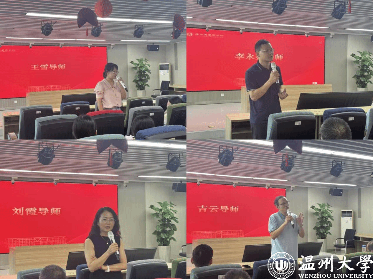 在分享环节之后,各导师介绍了自己的研究领域、在研项目、招生指标以及对学生的培养期待,让新生们对各位导师及团队有了更加全面和深入的了解。导师们勉励同学们在研究生阶段持之以恒、潜心学术,积极参与导师的学术研究和科研项目,在研究生阶段的过程中实现自我超越,收获真实而丰硕的成长。