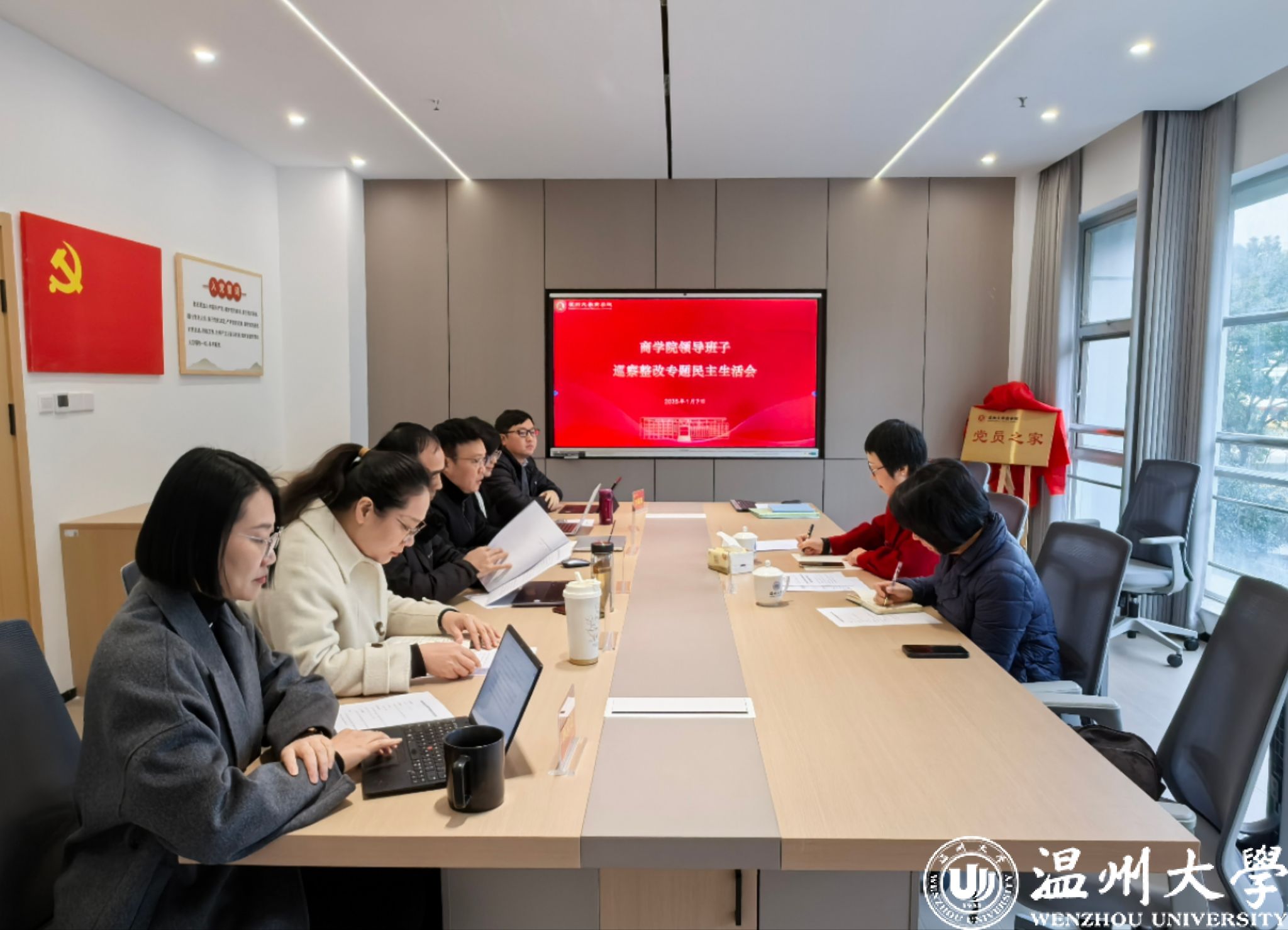 领导班子在A213党员之家会议室召开巡察整改专题民主生活会,学校本轮巡察工作组组长阮丽芬、副组长吴翔之列席会议。