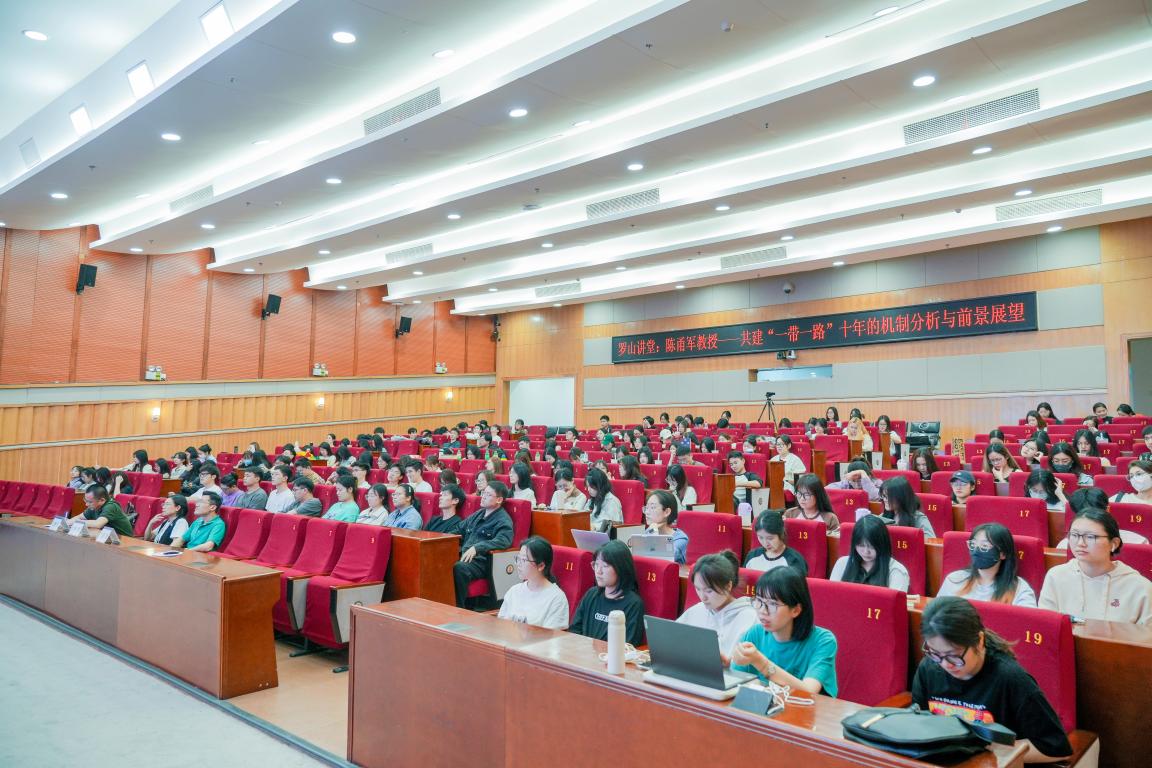 邀请,中国人民大学教授、广东财经大学大湾区双循环发展研究院院长陈甬军教授在育英图书馆二楼报告厅为大家带来题为“共建‘一带一路’十年的机制分析与前景展望”专题讲座。