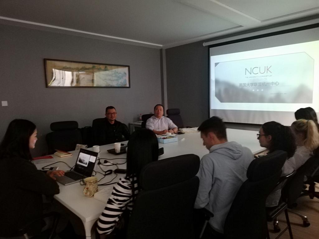副院长余向前教授、国际教学部主任徐正博士、教学秘书潘宁宁老师一行来到NCUK杭州中心,与该中心负责人李想校长及相关工作人员会面,双方主要就本科学生升硕及研究生在英深造等事项进行了深入探讨。